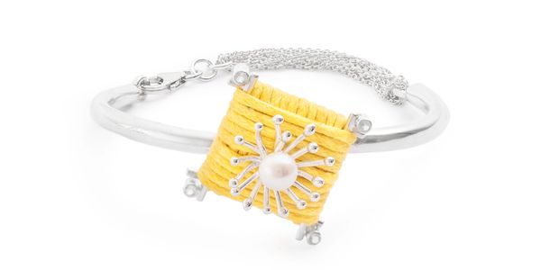 What begins as a fleeting impression—an architectural line, a shadow cast, a fragment of memory—is gradually transformed by hand into tangible form. Each design is crafted in small batches using traditional silversmithing techniques, combined with textural elements such as hand-wrapped cord and sculptural components.